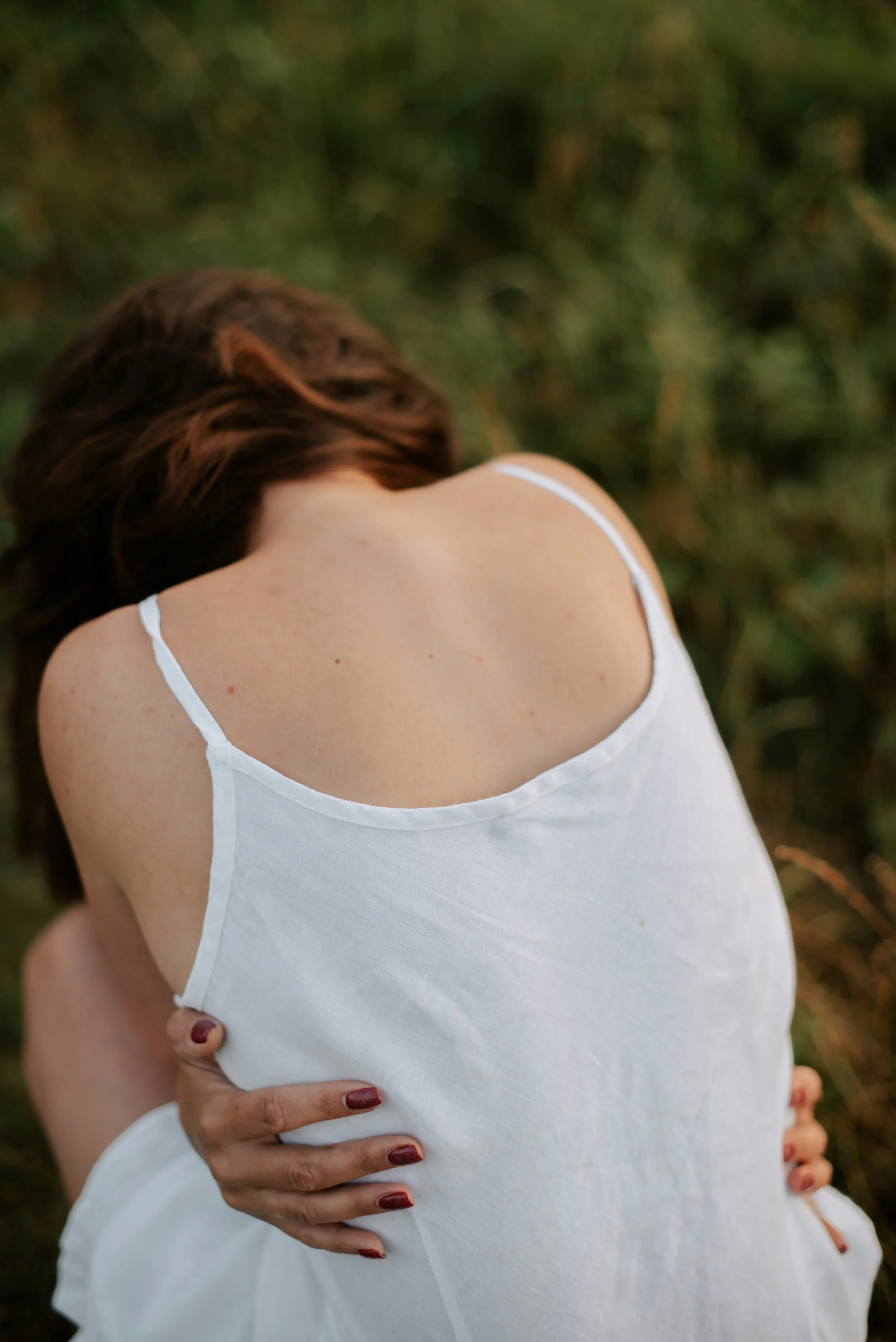 Check if the space between the arm and waist is the same on both sides. Uneven curves or one side looking “pinched in” could mean a spinal curve.
